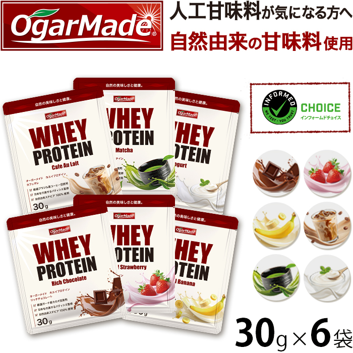 ホエイプロテインお試しセット 30g×6袋 全6種類 フレーバー 国内加工 ダイエット【OgarMade】オーガーメイド