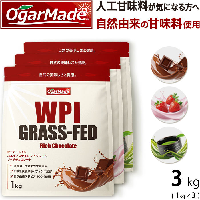 WPI ホエイプロテイン アイソレート グラスフェッド 3kg 選べる3種類 フレーバー 【OgarMade】オーガーメイド
