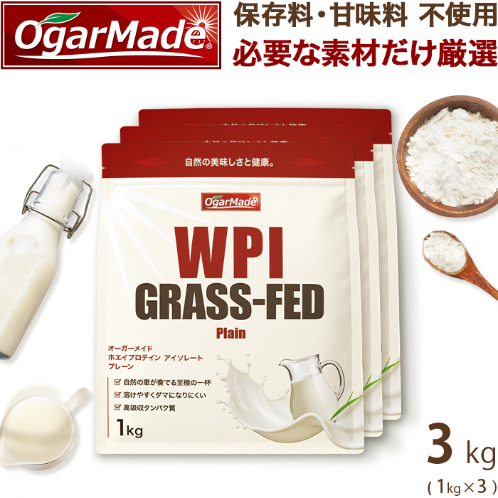 WPI ホエイプロテイン アイソレート グラスフェッド 3kg プレーン 国内加工 【OgarMade】オーガーメイド