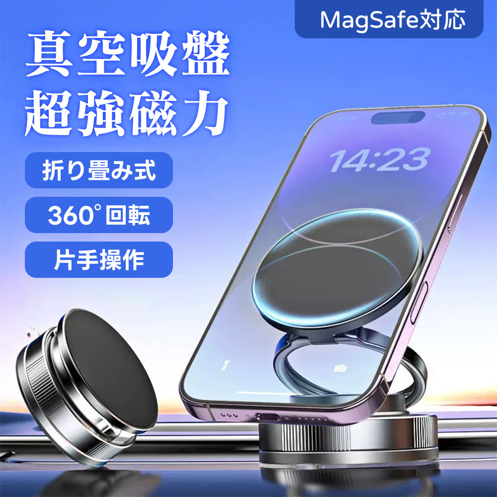 【凹凸道でもビクともしない!】スマホホルダー マグネット 真空吸盤 超強磁力 スマホスタンド Magsafe対応 360°回転 充電不要 全機種対応 スマホ車載ホルダー