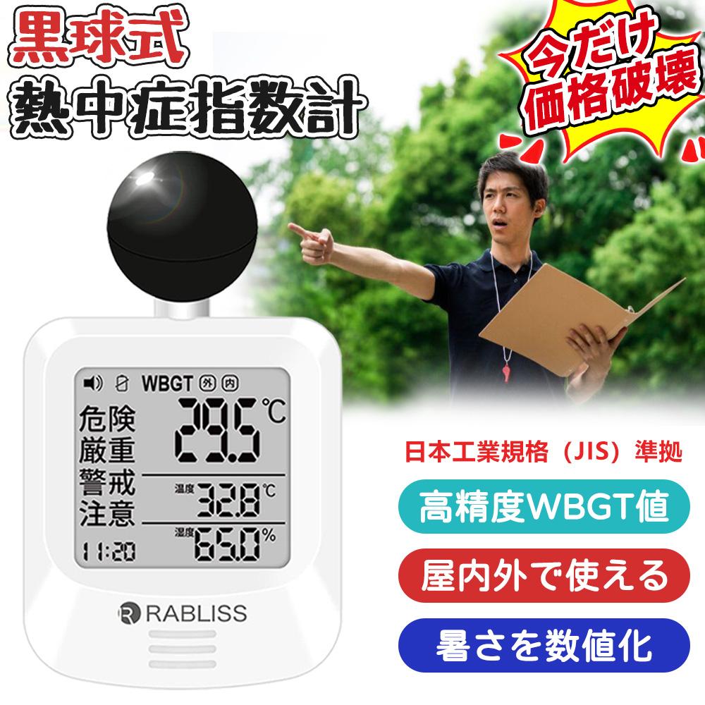 関連キーワード: 黒球式 熱中症指数計 WBGT測定器 改良版 小林薬品 気温・湿度・日射(輻射熱) 温湿度計 熱中症計 時計表示付き 熱中症対策グッズ アラーム機能 JIS準拠 JIS基準適合 気温 湿度 輻射熱 屋内外対応 工事現場 学校向け 野外 屋外 コンパクト 携帯型 熱中症対策 イベント アウトドア KO392 熱中症計 黒球式 熱中症アラーム | 熱中症指数計 温湿度計 黒球式温度計 WBGT計 携帯型熱中症計 スポーツ 部活 体育 室内 職場 義務化 屋内 屋外 現場 工事現場 現場対策 熱中症対策 デジタル表示 イラスト 子供 大人 高齢者 施設 黒球式 熱中症指数計 WBGT測定器|JIS適合|温度 湿度 輻射熱 屋外 アラーム wbgt計 測定器 指数 計 黒球 携帯 アラート 表示 黒鉄型携帯熱中症計 温度計 熱中症指数 黒球 メーカー直営 KO392 JIS 工場 現場 スポーツ 介護 学校 保育園 病院 仕様変更モデル JIS準拠(適合)の黒球式WBGT計で、輻射熱・湿度までしっかり管理!気温・湿度・輻射熱を一括測定!作業現場の安心・安全を守る! 適格請求書 発行対応 2025年6月からの義務化にも対応!義務化対策 JIS 規格対応 注意・警戒・厳重警戒・危険」 4段階警告 アラーム音 ベルト・バッグ・腕装着・三脚設置・壁面設置