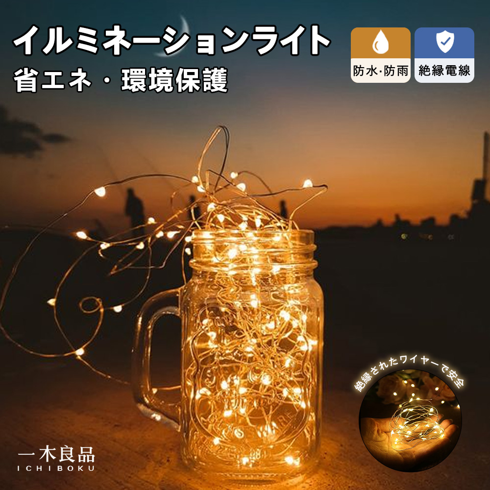 【DIY可・丸ごと防水】3色 10m イルミネーションライト クリスマスライト ストリングライト ワイヤーライト 照明 新年 LEDライト ガーデン 長寿命 タイマー機能