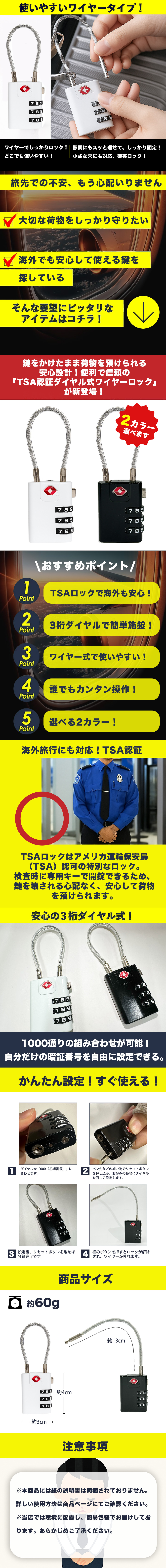 【商品名】TSA搭載 ダイヤル式ワイヤーロック