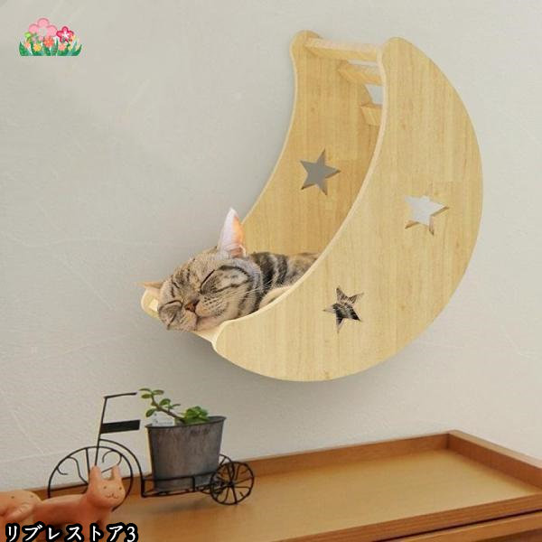 キャットステップ 月 壁付け 猫用 ハウス 木製 キャットウォーク 壁 手作り 猫 棚板 棚 木製 木 diy ベッド