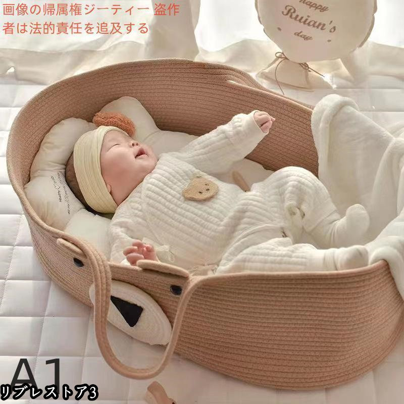 クーファン かご ロープ編み クーハン ケット 赤ちゃん 収納バスケット 持ち運び シンプル 無地 退院 出産祝い ベビー用品 新生児