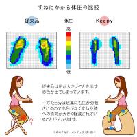 Keepyは、従来からの背筋を伸ばす効果はそのままに、体重を「お尻」「すね」「足うら」の3点で支える構造に改良する事により体圧分散を向上させ、長時間の使用でも疲れにくくすることが可能となりました。
