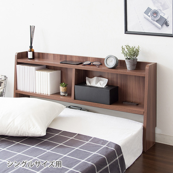 ヘッドボード 後付けヘッドボード シングル ベッド 収納棚 宮棚 コンセント付 携帯置き 時計置き 木目調 奥行17cm 布団 マットレス ムール HB-F1000 宮武製作所