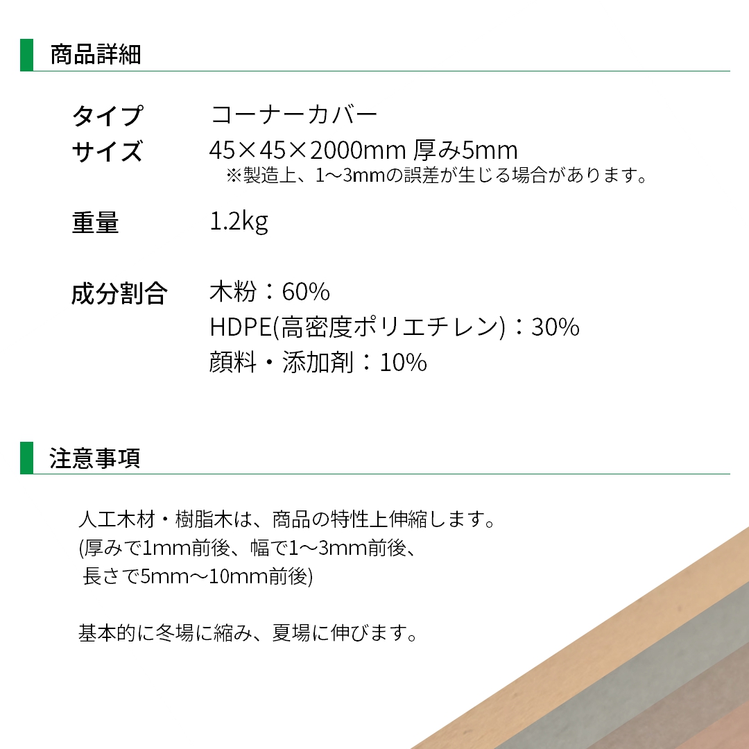 人工木材は、商品の特性上伸縮します。