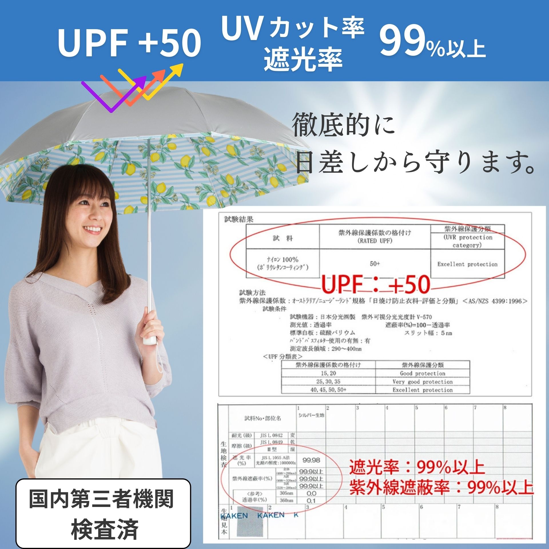 UVカット率99%以上 遮光率99%以上 遮熱効果 日傘