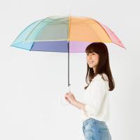 雨の日も出かけるのが楽しくなりそうな7色の透明ビニール傘です。