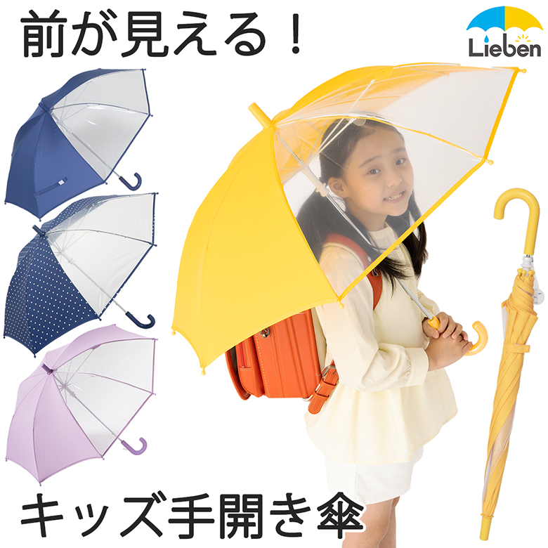 傘 子供用 キッズ 男の子 女の子 50cm 透明窓付 雨傘 長傘 手開き 卒園記念品 小学生 雨具 LIEBEN-0622