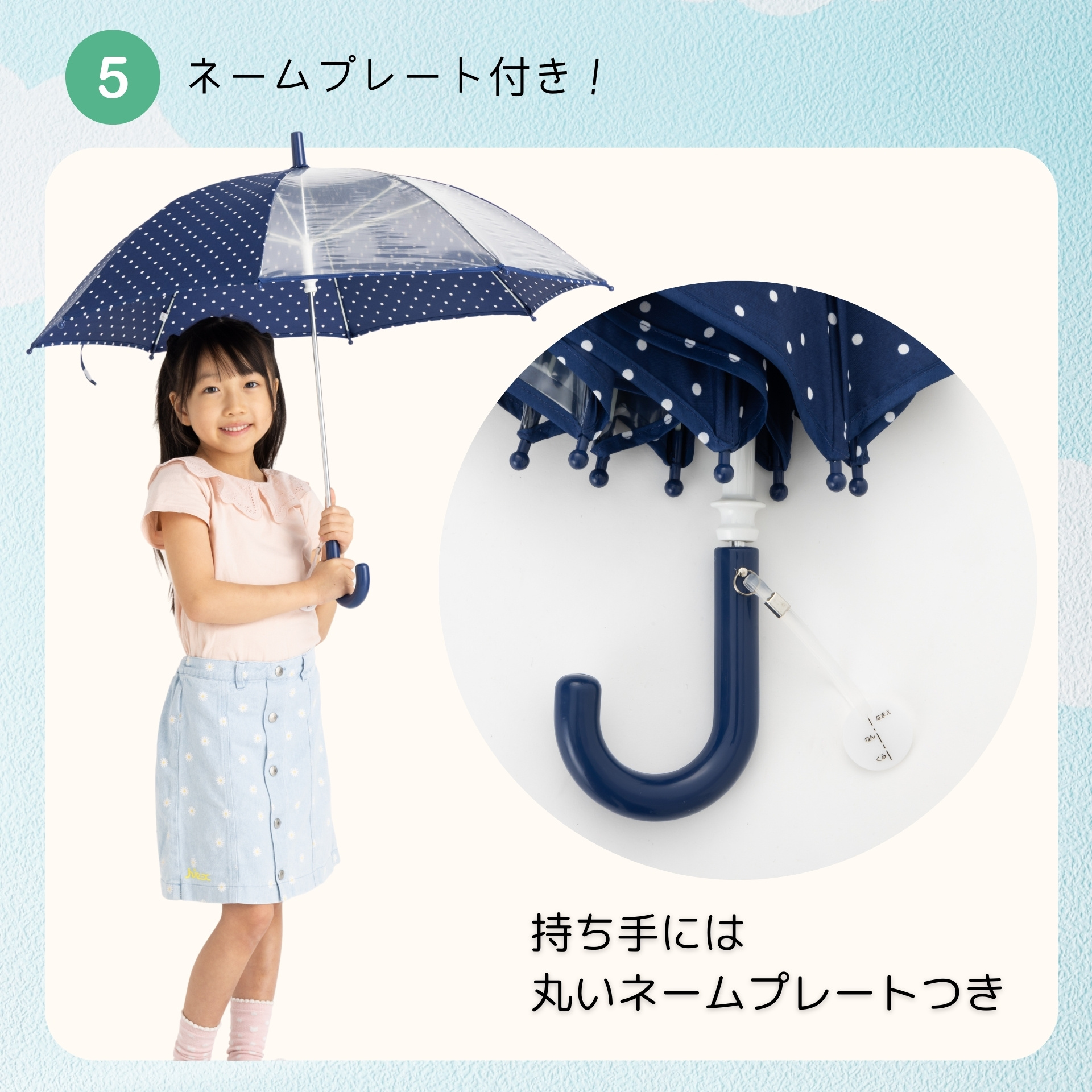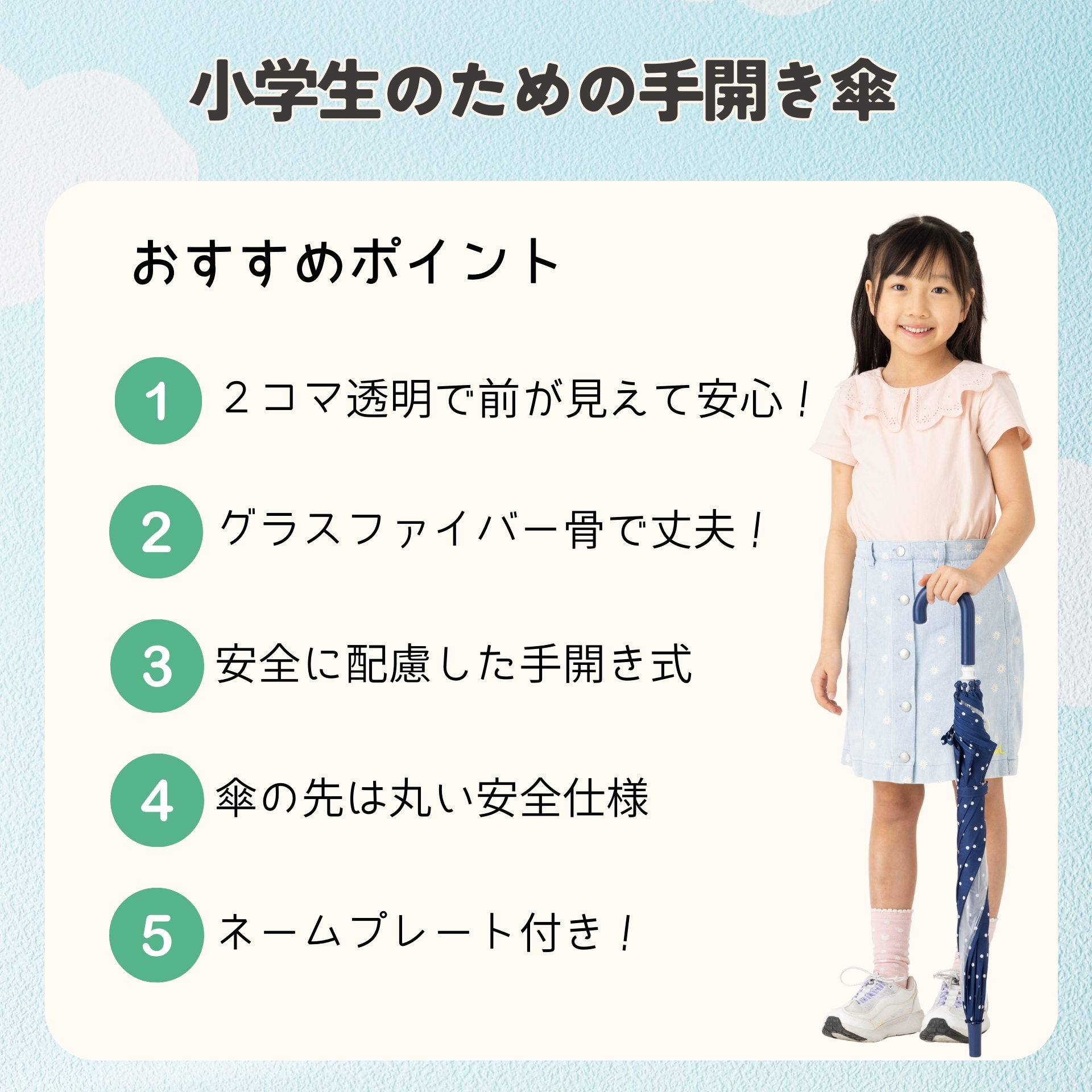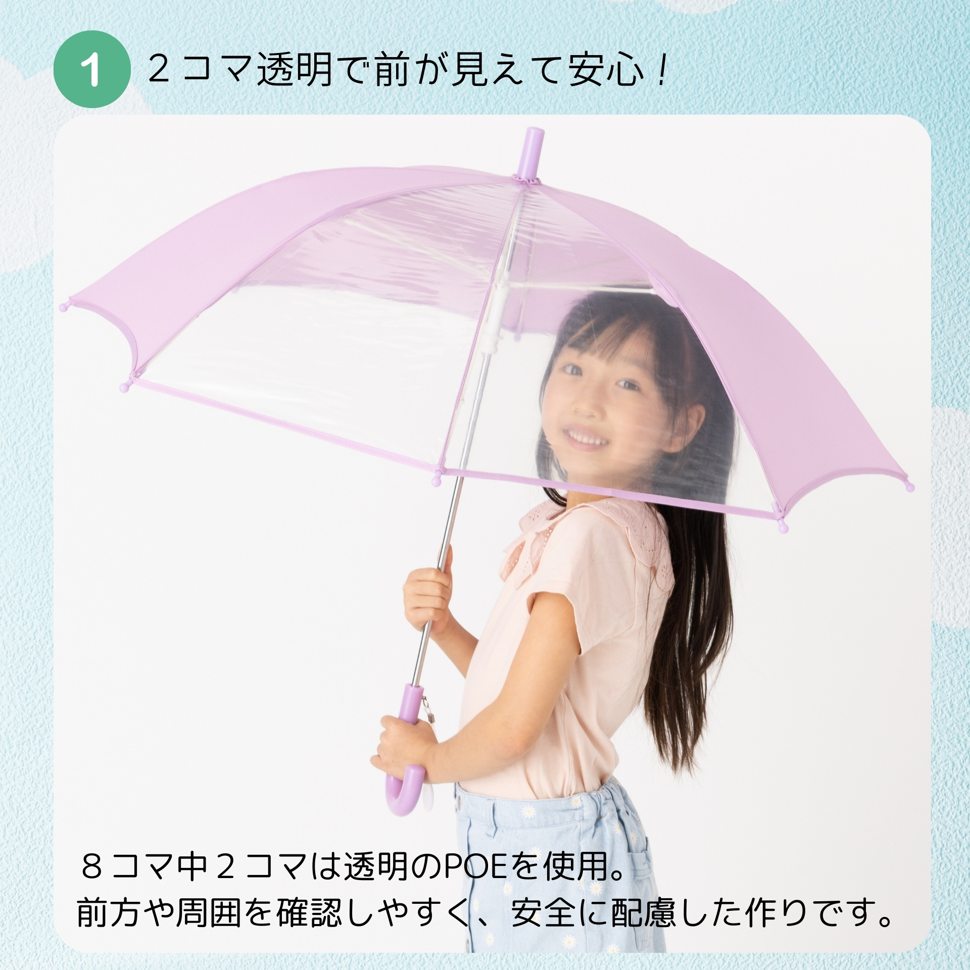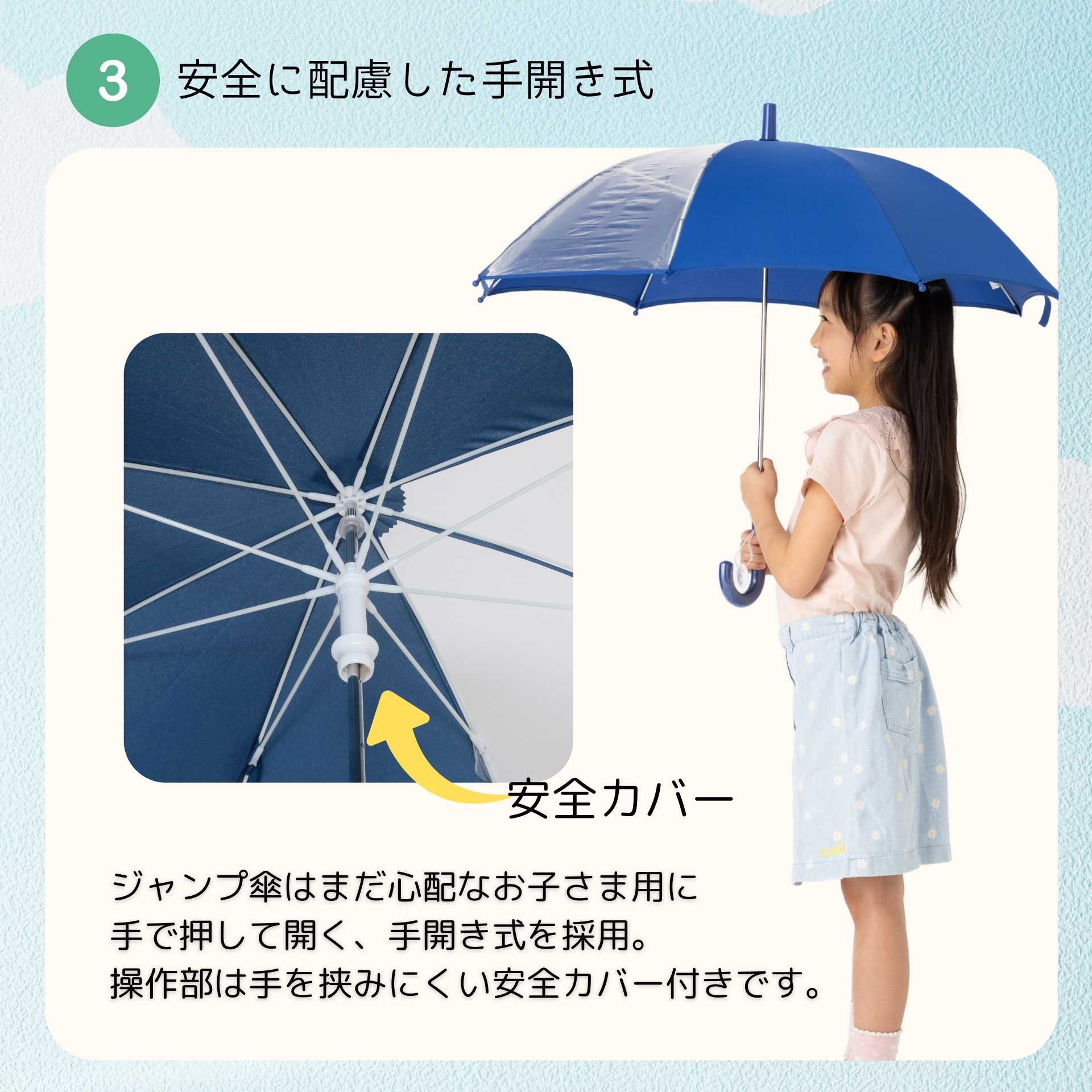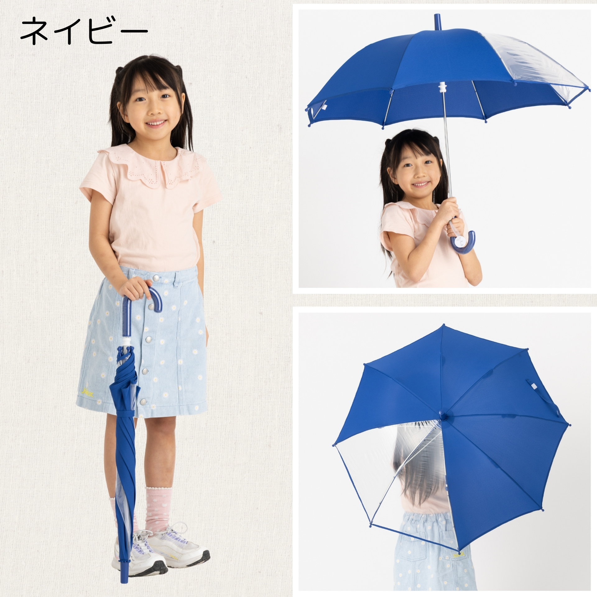 前が見える! キッズ手開き傘 50cm