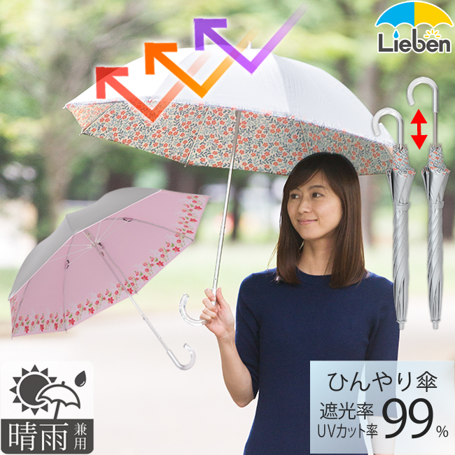 日傘 コンパクト長傘 遮熱 UVカット シルバー 晴雨兼用 50cm×8本骨 ひんやり傘 LIEBEN-1490 (LIEBEN-1477)