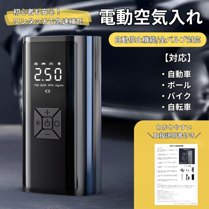 電動空気入れ 電動 自転車 自動車 バイク 米式 ボール サッカー 充電式 車 タイヤ空気入れ 自動停止 浮き輪 USB 軽量 小型 事故 防止 防災 懐中電灯