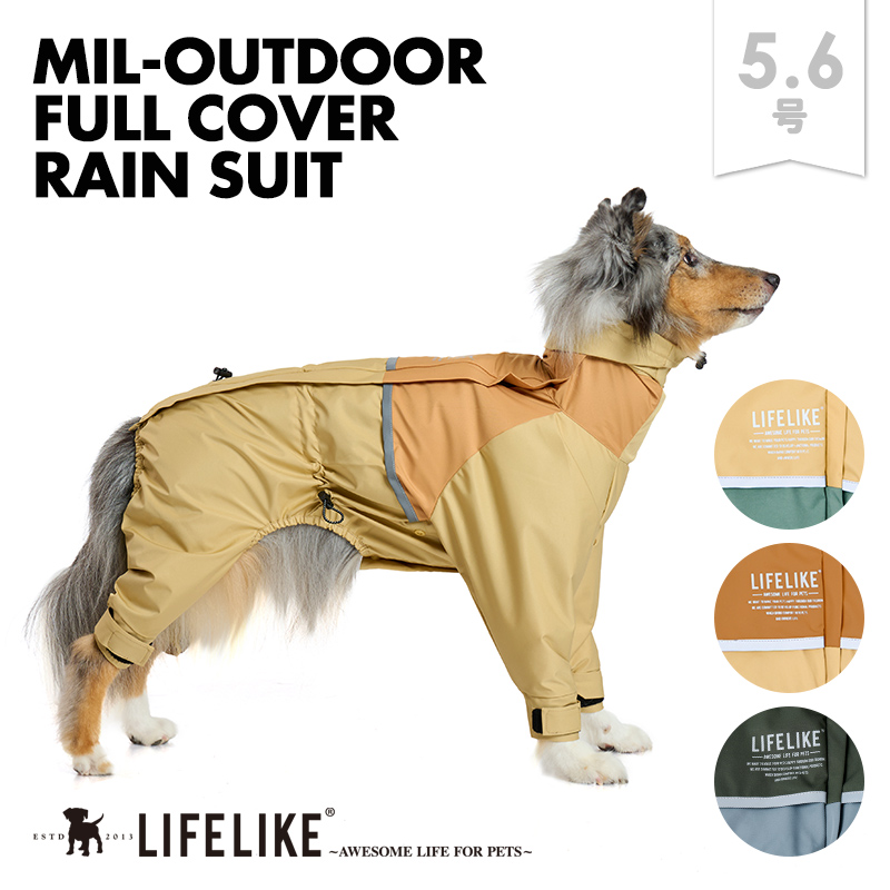 ミルアウトドアフルカバーレインスーツ5-6号 レインコート 犬のカッパ 中型犬カッパ 犬 雨 散歩 グッズ 犬用カッパ 中型犬 ドッグ ペッ