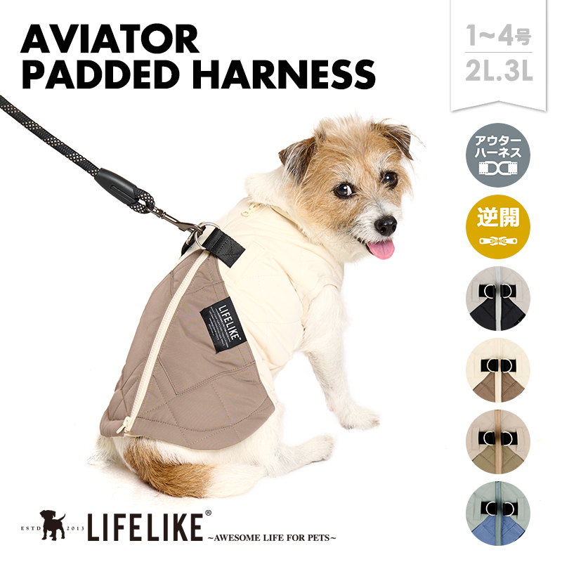 アビエイターパデッドハーネス1-4号2L-3L 犬服 犬 服 アウター 上着 ハーネス 散歩 小型犬 胴輪 防寒 秋冬 ライフライク 爆買