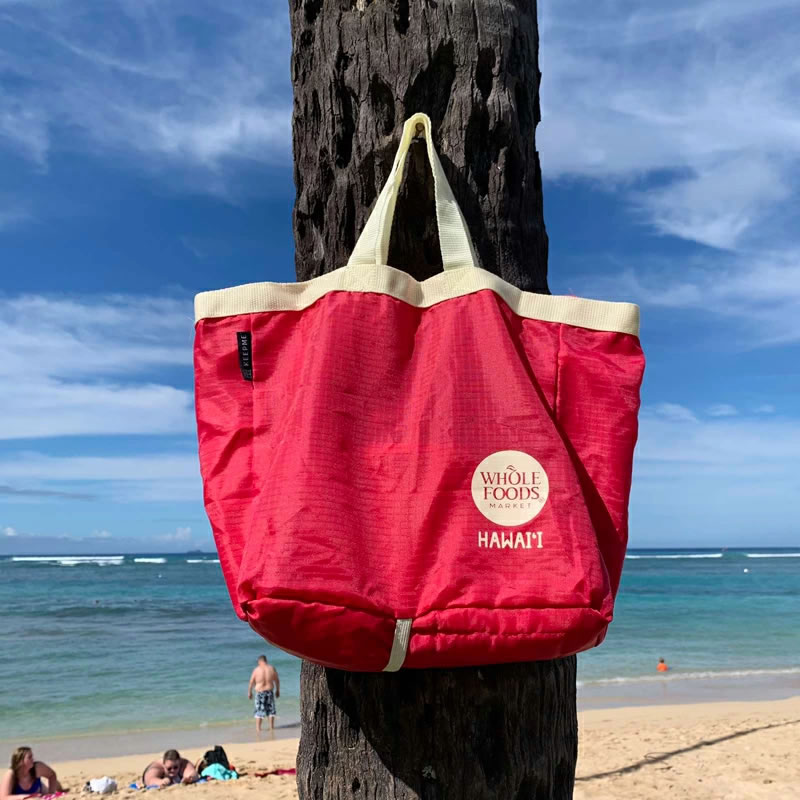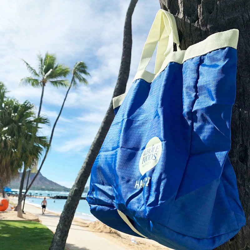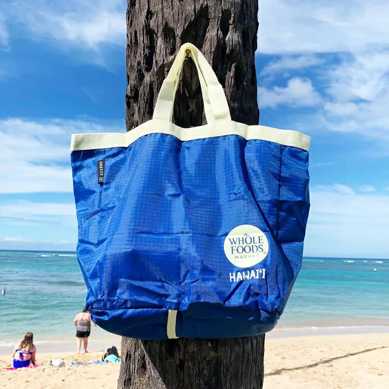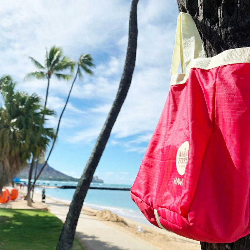 WHOLE FOODS MARKET ホールフーズマーケット コンパクト エコバッグ ハワイ限定 ピンク ブルーコンパクトサイズ eco ecobag ハワイ直輸入 正規品 ◎