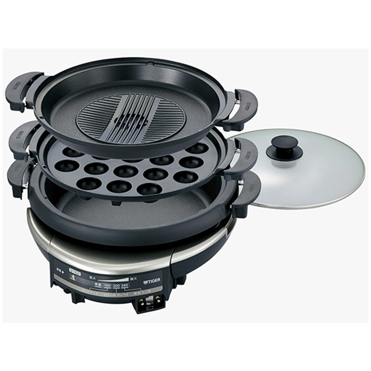 タイガー TIGER グリル鍋 3枚プレート(穴あき・波形/たこ焼き/深なべ) CQD-B301-TH グリルなべ メタリックブラウン