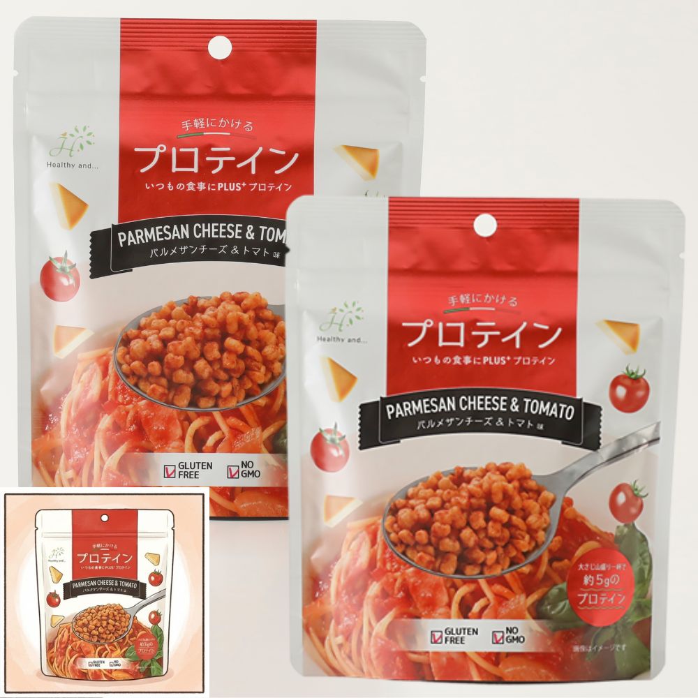 (2袋セット) 手軽にかけるプロテイン パルメザンチーズ&トマト 料理にかけるだけ たんぱく質 粒状 グルテンフリー NON-GMO 大さじ山盛り1杯で約5g プロテイン