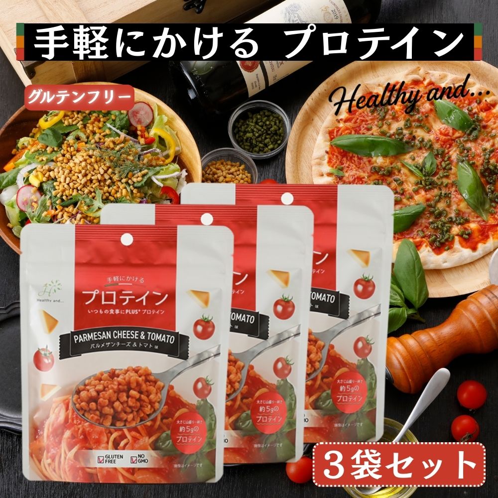 (3袋セット) 手軽にかけるプロテイン パルメザンチーズ&トマト 料理にかけるだけ たんぱく質 粒状 グルテンフリー NON-GMO 大さじ山盛り1杯で約5g プロテイン