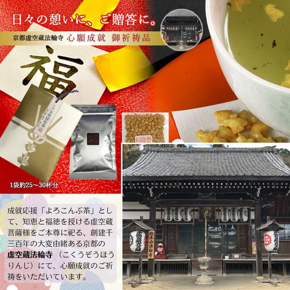 ◆「心願成就 御祈祷茶」本品は、京都・虚空蔵法輪寺にて「心願成就」の御祈祷を受けた縁起茶です。