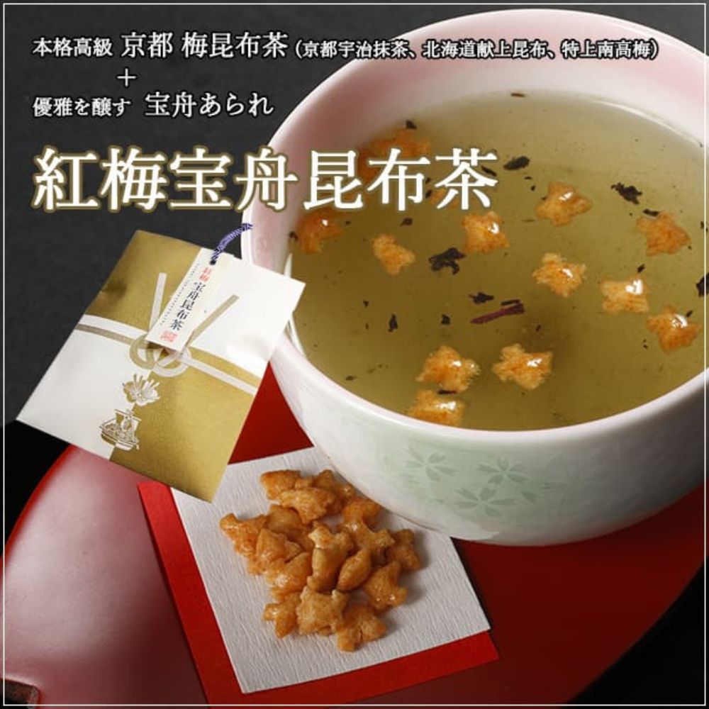 京西陣菓匠宗禅の高級梅昆布茶「紅梅宝舟昆布茶」100年の伝統と一子相伝の技が織りなす、京都らしい気品あふれる味わい。