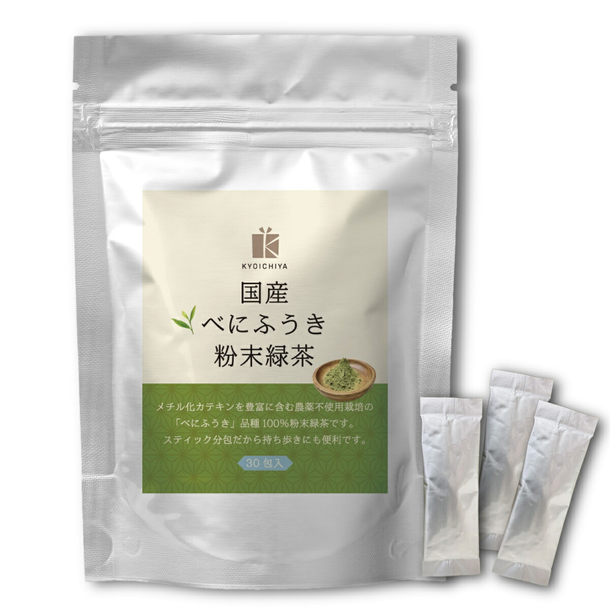 | べにふうき 粉末 緑茶 メチル化カテキン スティックタイプ 30日分(1g×30包)京一屋 熊本県産 粉末緑茶 無農薬 化学肥料不使用 特別栽培農産物 |