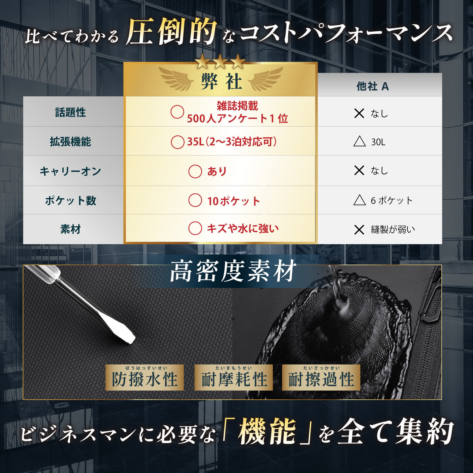 無駄を省いたシンプルなデザインと大容量・多機能さが自慢のビジネスバックパック、