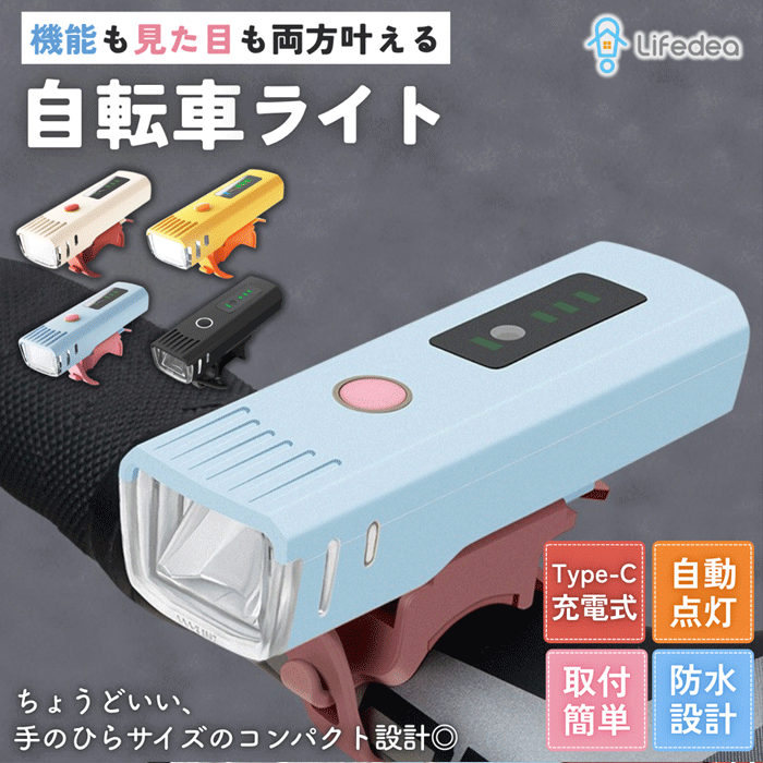 自転車ライト LED 充電式 おしゃれ かわいい 防水 USB充電 自動点灯 ライト センサー 自転車用 ヘッドライト LEDライト
