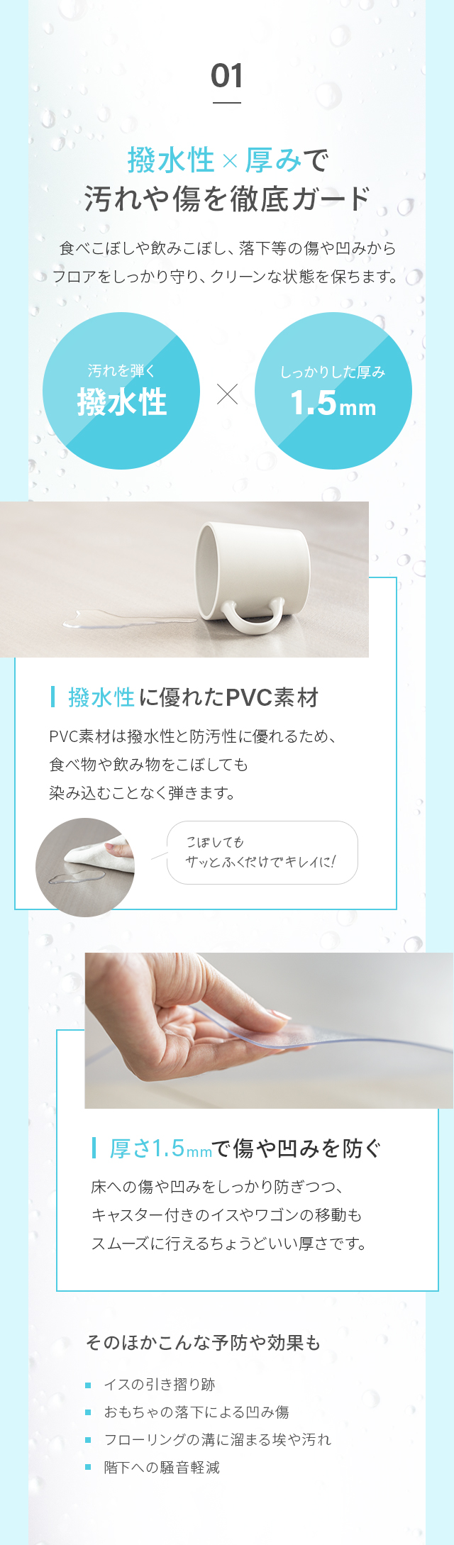 【即日発送/日時指定OK】 クリアマット 180×240cm 1.5mm厚 撥水 抗菌 防カビ 床暖房対応 フロアマット ダイニングマット 床マット 床保護マット 防水マット