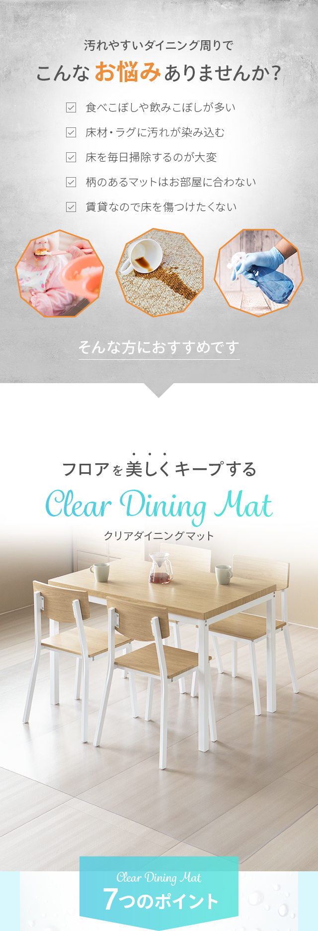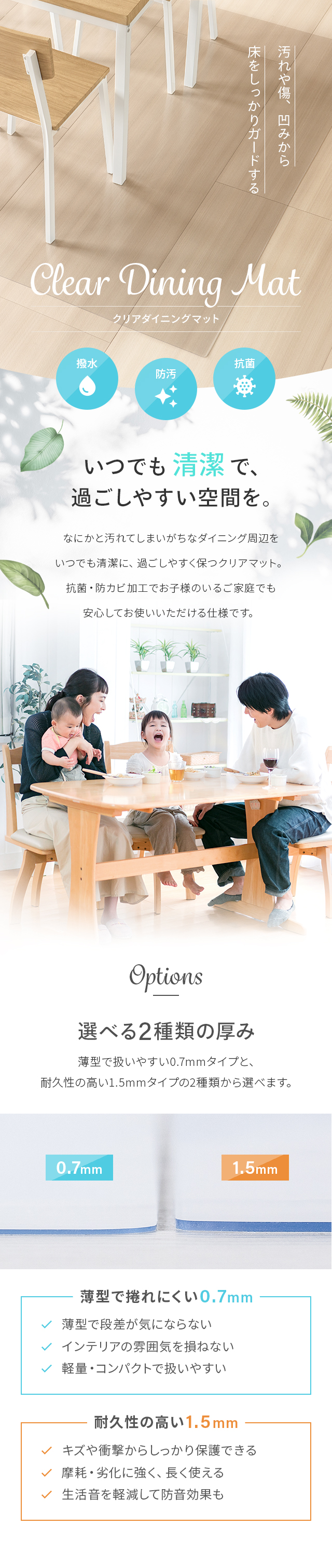 【即日発送/日時指定OK】 クリアマット 150×190cm 0.7mm厚 撥水 抗菌 防カビ 床暖房対応 フロアマット ダイニングマット 床マット 床保護マット 防水マット