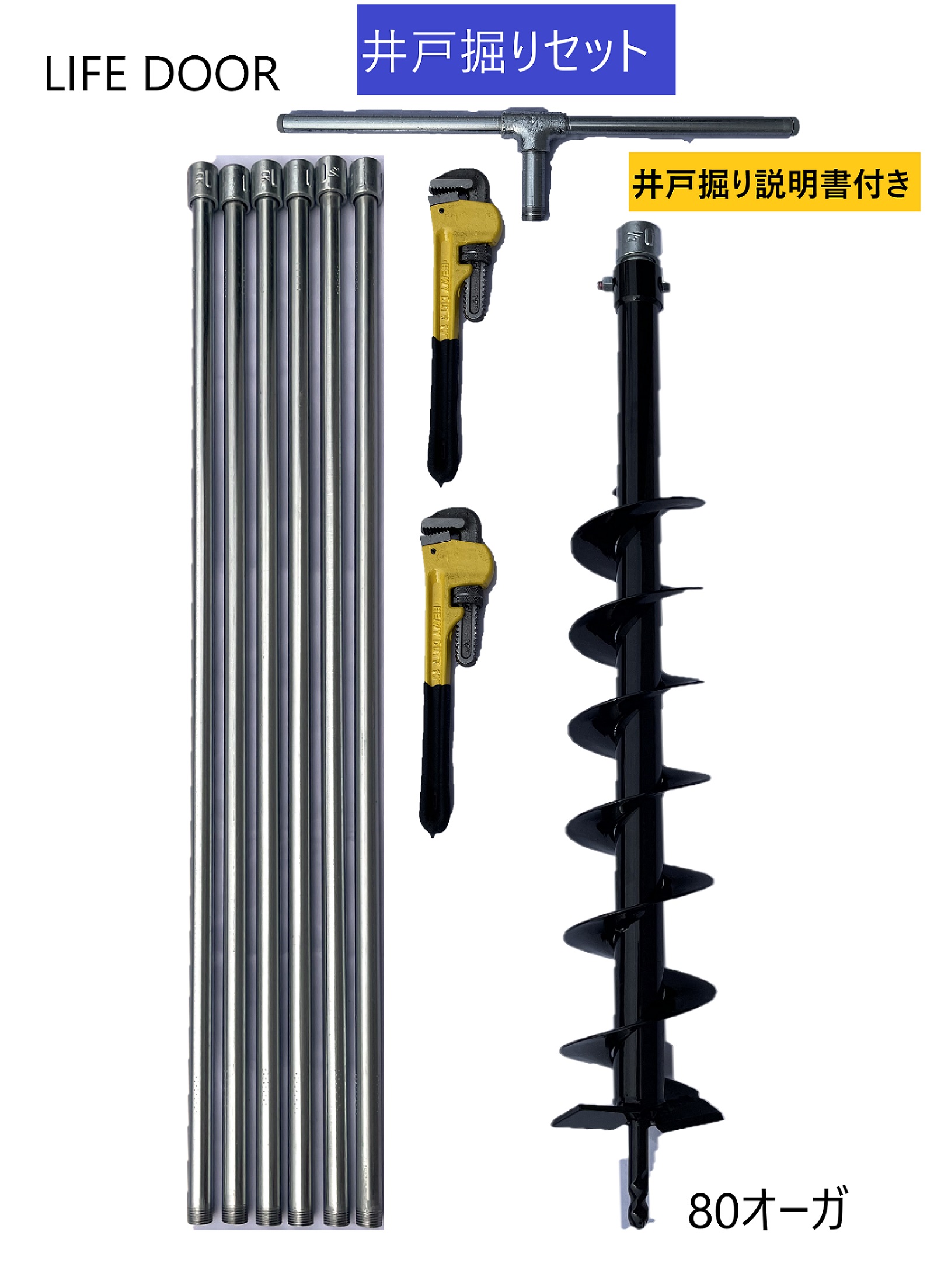 井戸掘り【説明書付き】キット 経80mmオーガ 全長6m20cm (延長追加可)軽量鋼管製