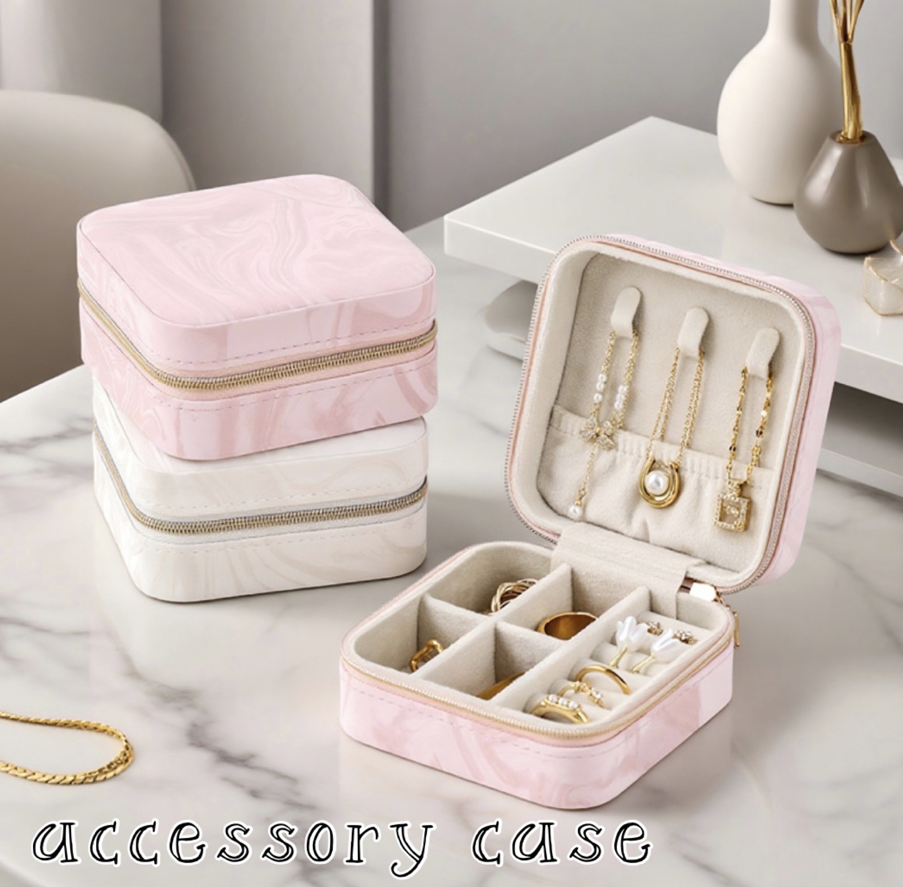どこへでも気軽に持ち運べる マーブル柄のアクセサリーケース