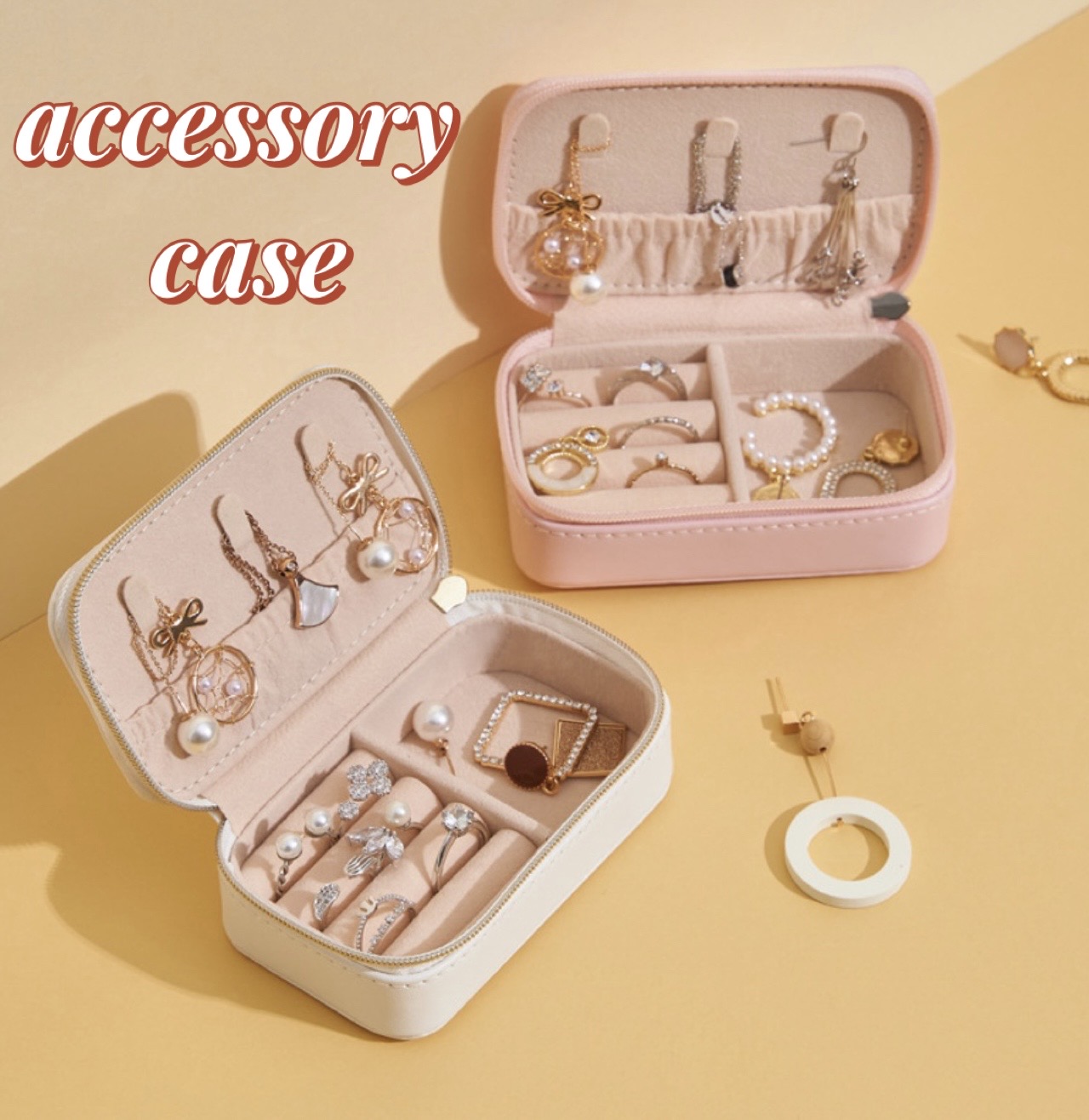 ピアス・リング・ネックレス・ブレスレットなどまとめて収納でき、旅行や外出先でも大切なアクセサリーをやさしく保管できます。
