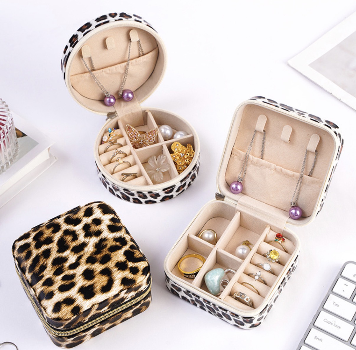 アクセサリーケース レオパード柄 ジュエリーケース コンパクト 持ち運び 小物入れ 指輪 ネックレス ブレスレット 収納 ミニ トラベルケース トラベル