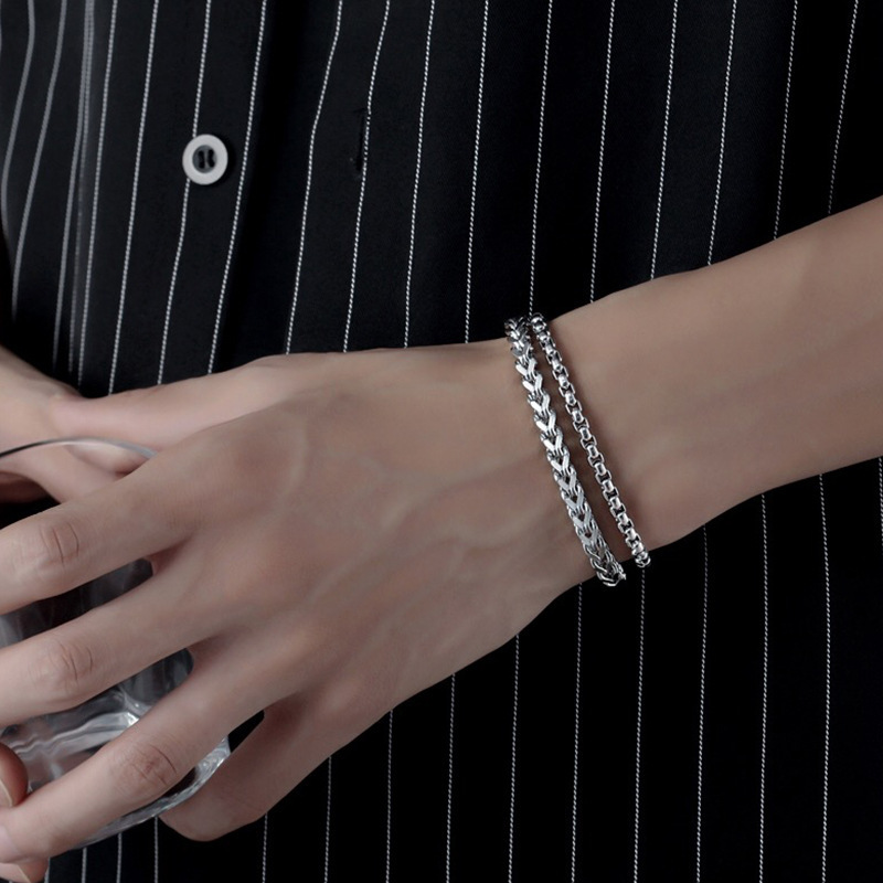 ブレスレット メンズブレスレット シルバーブレスレット チェーンブレスレット ダブルチェーン 太めブレスレット 重厚感 ストリートアクセサリー ユニセックス カジュアル モード系 ギフト プレゼント