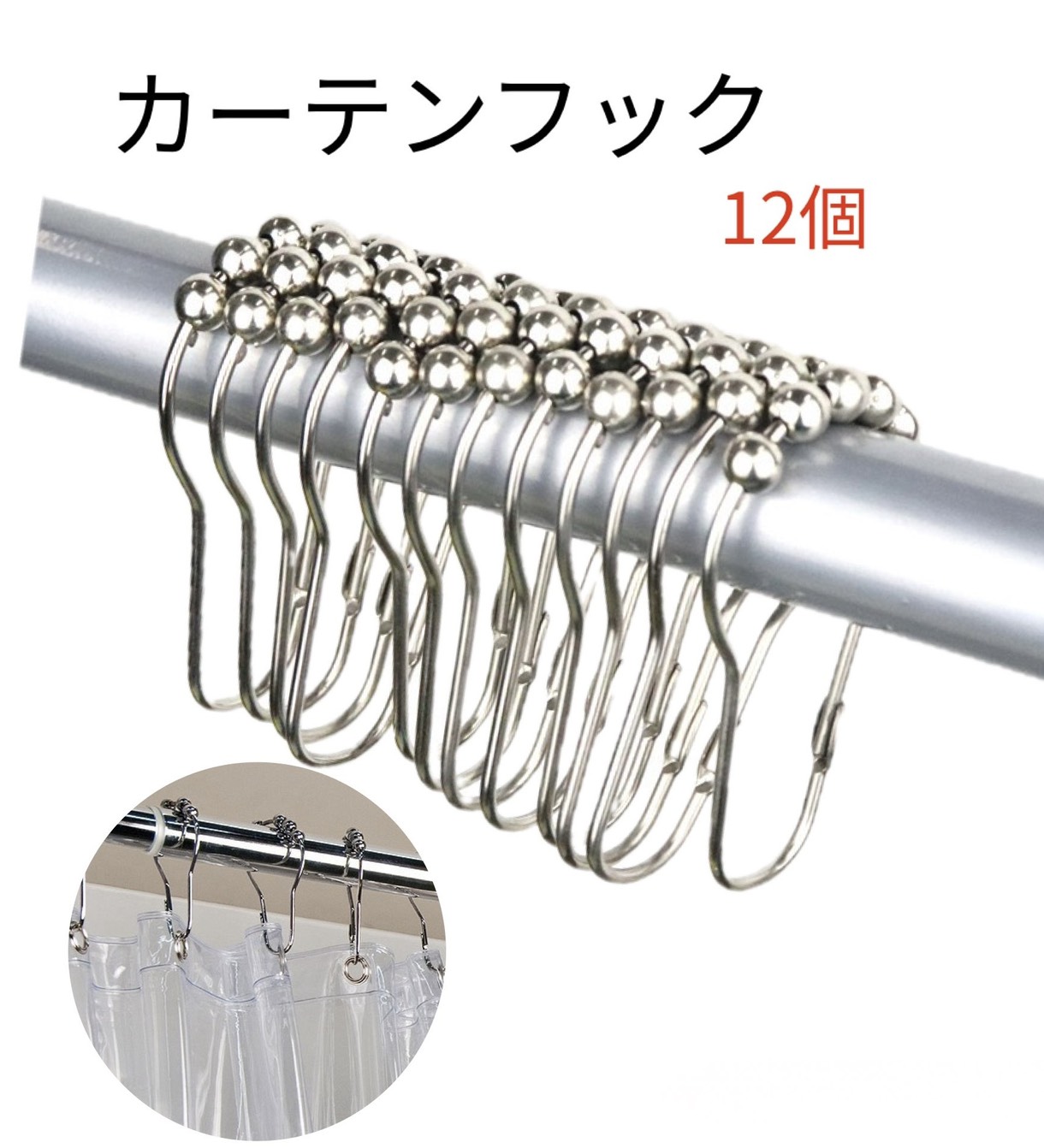 シャワーカーテン フック ローラーボール 12個セット S字フック 滑らか開閉 バスカーテン 収納フック 多用途 メッキ ユニットバス キッチン クローゼット
