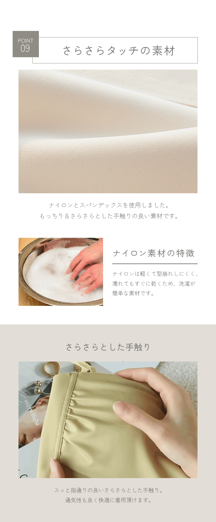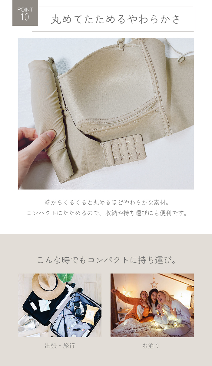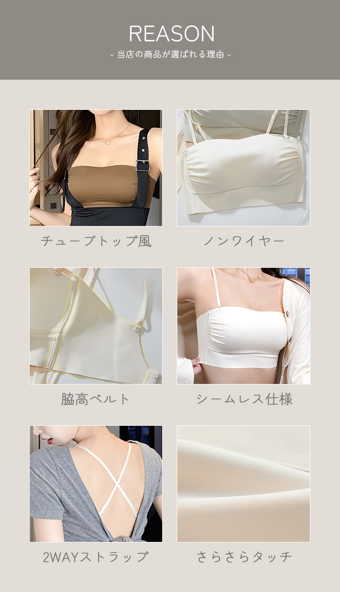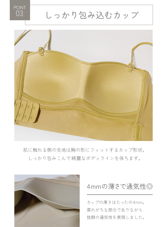 透けにくくなめらかな素材+チューブトップのようなデザインで、下着のラインが見えにくいので薄着でも安心です。