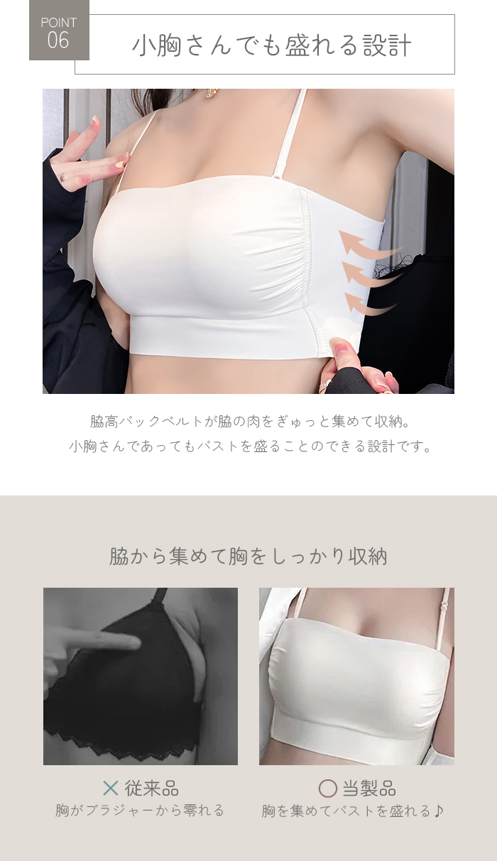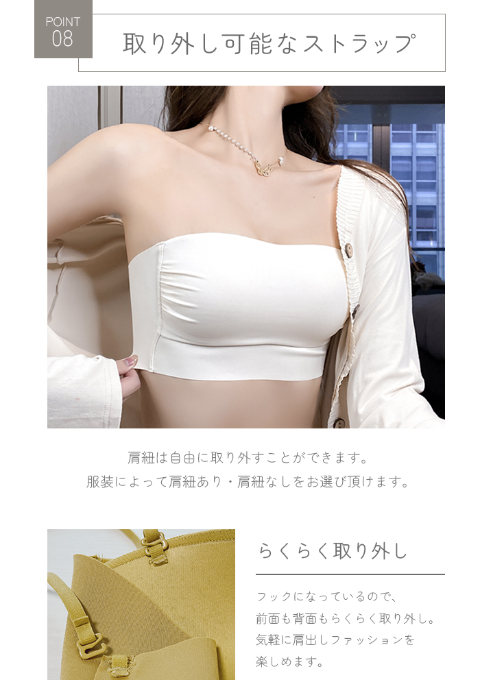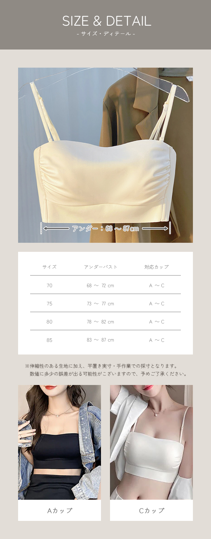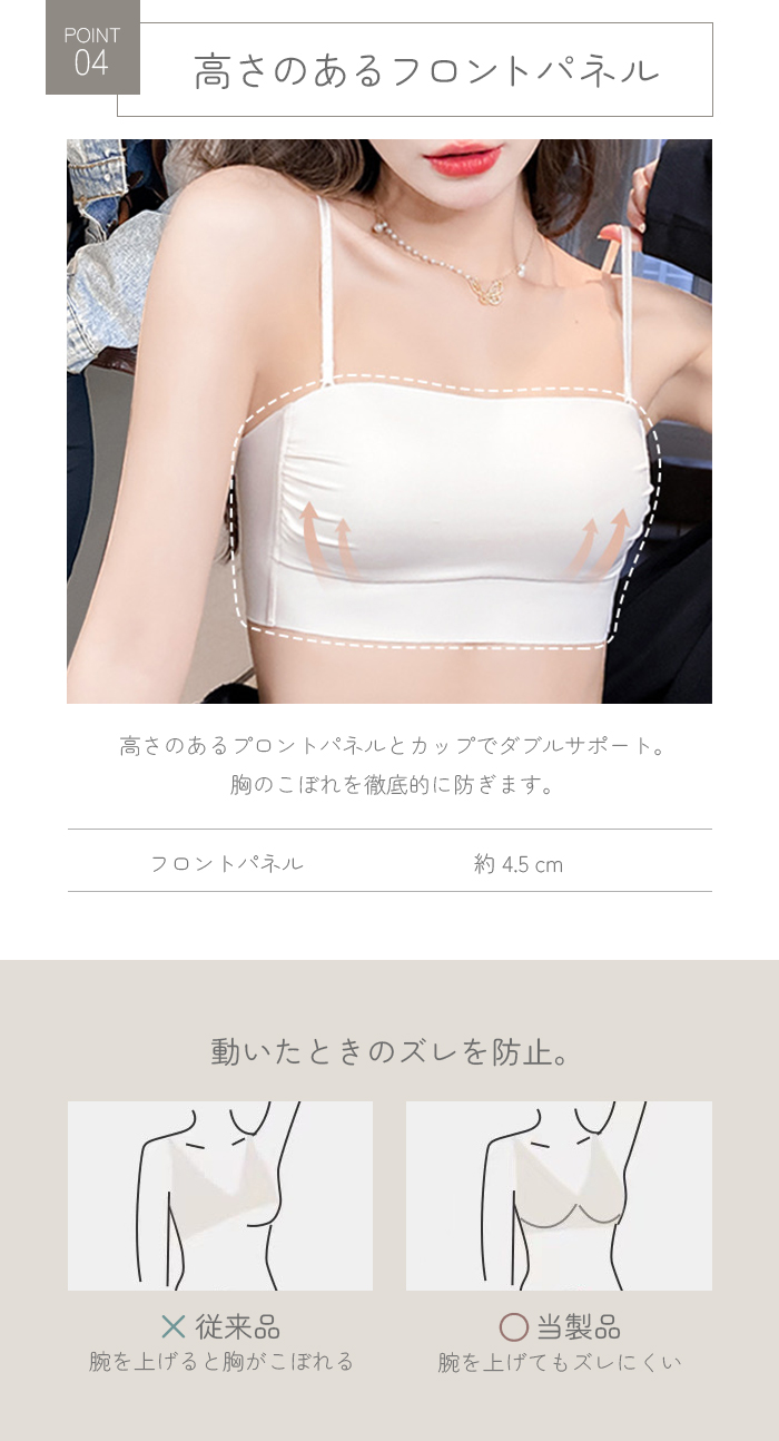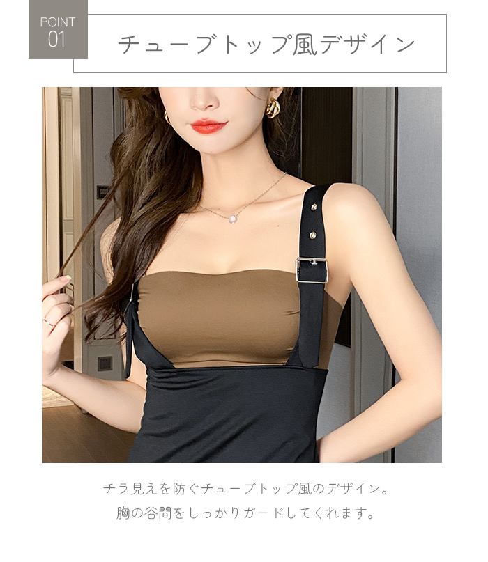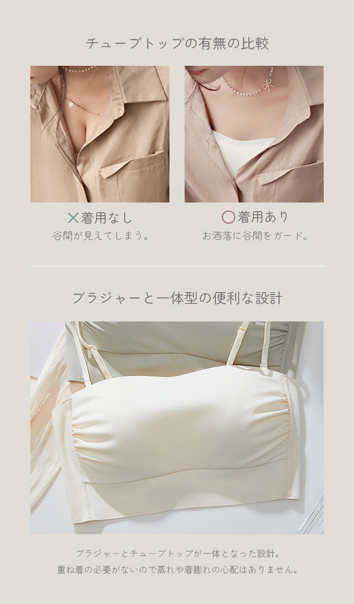 ブラとチューブトップが一体型なので、重ね着の必要はありません。