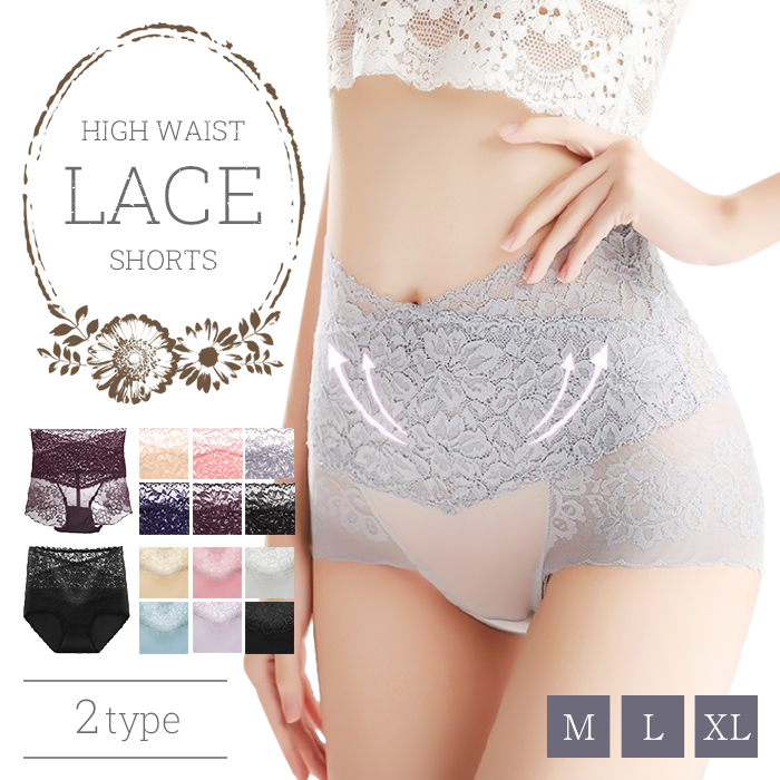 商品名幅広ハイウエストレースショーツ2タイプレースバックタイプ/フルバックタイプ