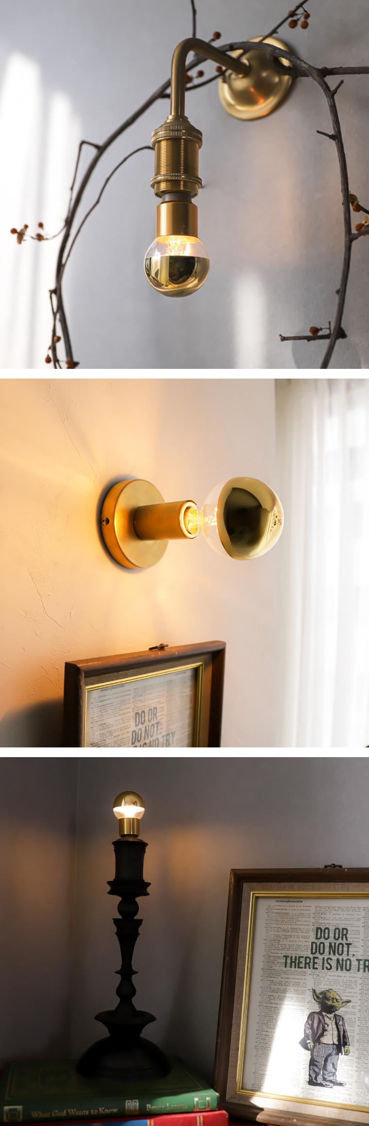 真鍮製のブラケットライトや照明器具とも相性抜群。キッチン・リビング・寝室・玄関・書斎など、家中の電球をスマート化して、便利で快適な暮らしをお楽しみください。