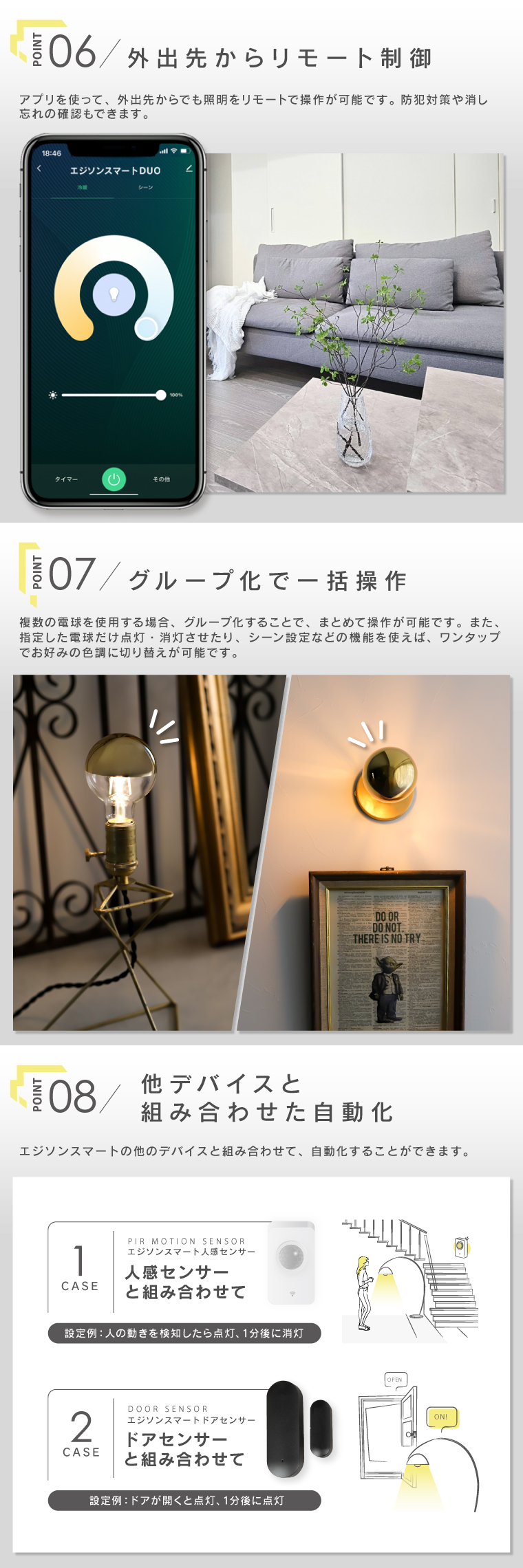 「エジソンスマートスポットライト」「ミニシーリングライト」など、他のスマート照明とも一緒に使えます。