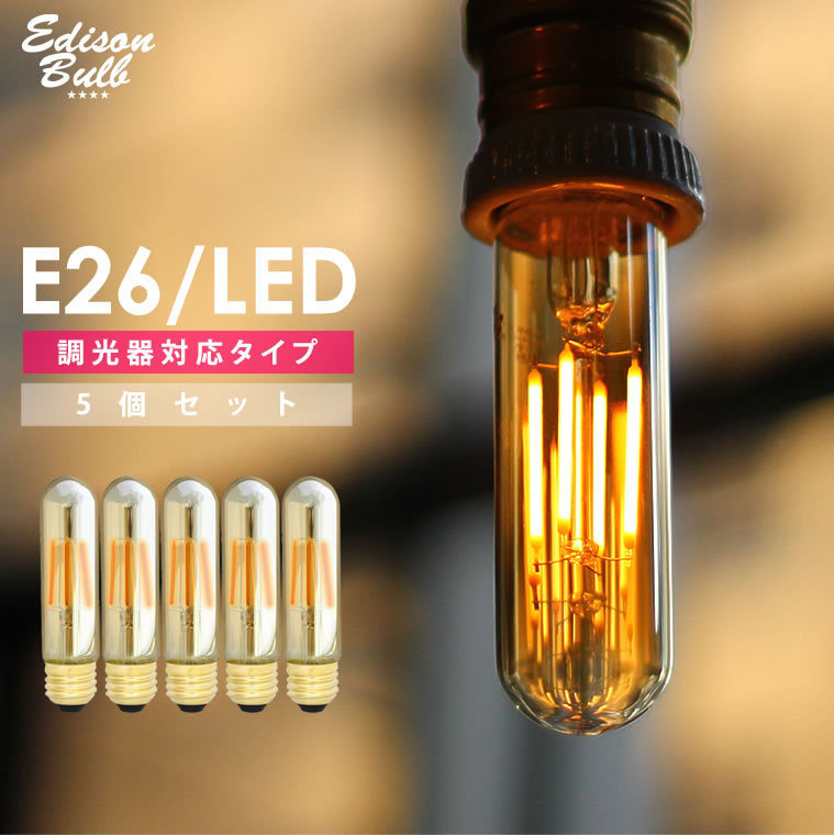 商品名 | 【5個セット】【調光器対応】エジソン バルブ LED E26 チューブゴールド EDISON BULB LED E26 TUBE GOLD |