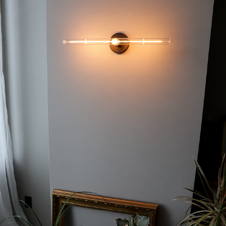 壁付け照明器具では横向き・縦向きどちらにも取り付けでき、空間に合わせて水平ラインや縦長のライティング演出が可能。例えば、トイレ・洗面台の鏡の上に取り付けて手元を照らしたり、ピクチャーライトのようにお気に入りのポスターや絵画の上に横向きで設置する演出照明にもおすすめ。また、ベッドサイドや吹き抜けの壁面には縦長に取り付けることで、存在感のあるライティングを楽しめます。