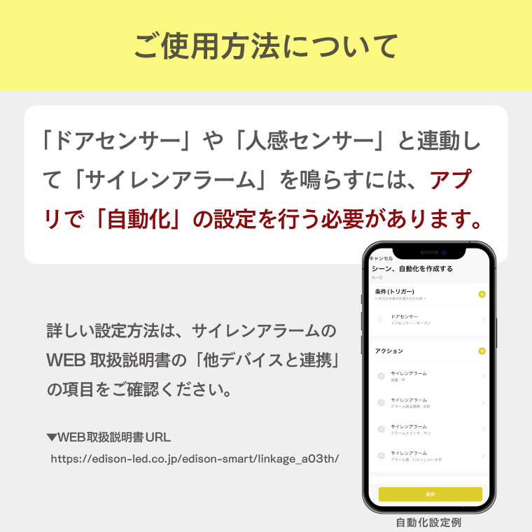 | 商品名 | エジソンスマート 人感センサー + サイレンアラーム EDISON SMART PIR MOTION SENSOR + SIREN ALARM SET |