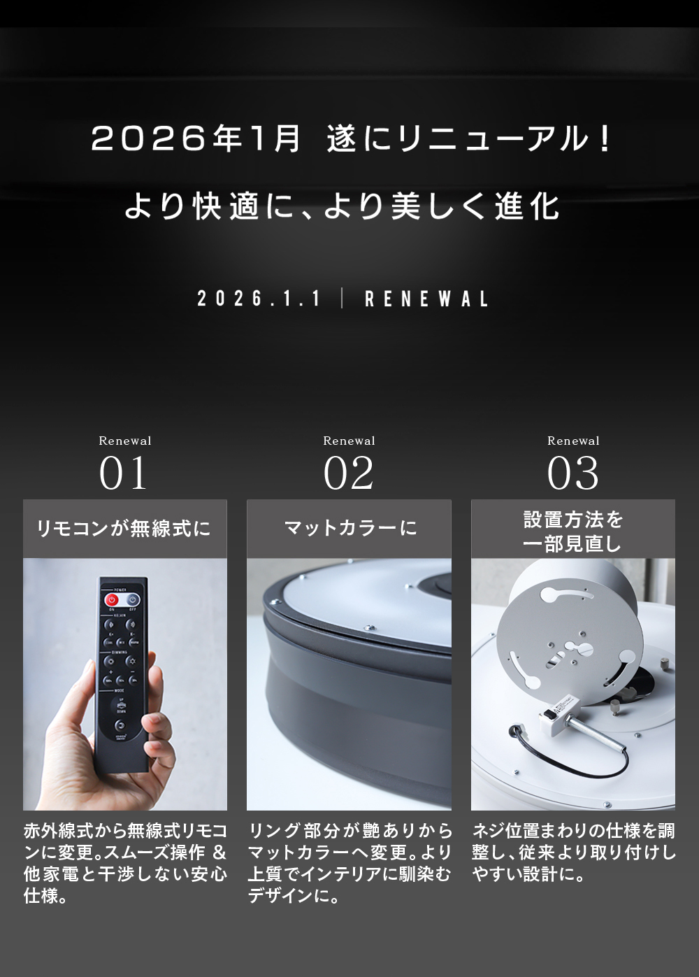 日本発IoTブランド「エジソンスマート」製品一覧はこちら2026年1月 リニューアル!1.付属のリモコンを赤外線式から無線式リモコンに変更。スムーズ操作 & 他家電と干渉しない安心仕様。