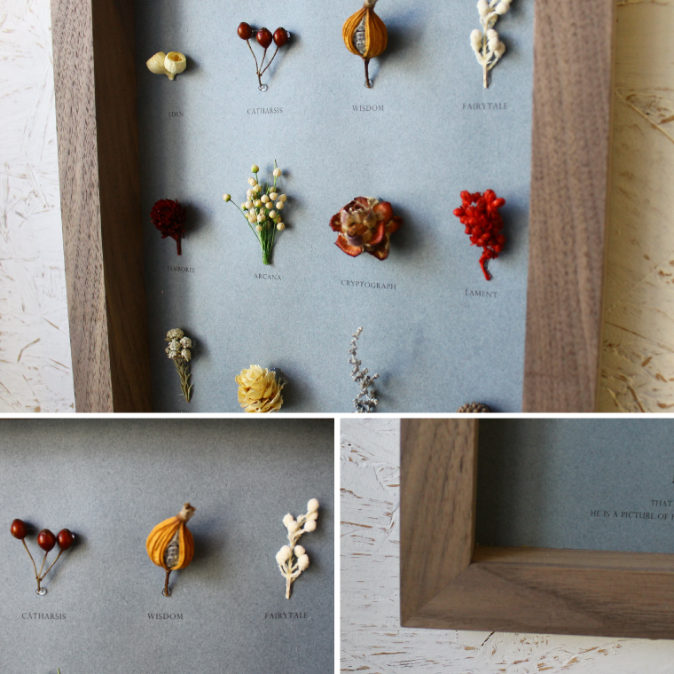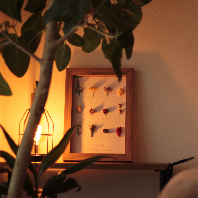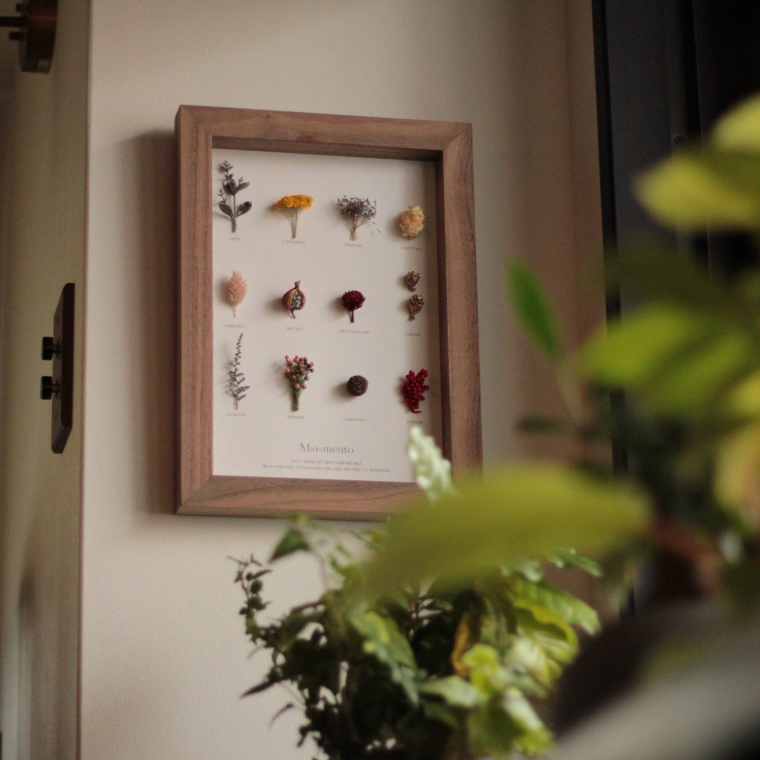 「Moement(モエメント)」 ボタニカルフレーム Herbarium12岡山の高級家具などを専門に製造している木工所で、家具製作の際などに発生する端材をフレームに使用したドライフラワーフレーム。