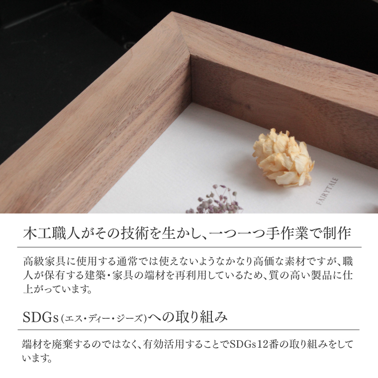 高級ウォールナット無垢材を使用し、日本の職人が一つ一つ丁寧に作るフラワーフレーム