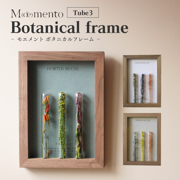 「Moement(モエメント)」 ボタニカルフレーム Tube3岡山の高級家具などを専門に製造している木工所で、家具製作の際などに発生する端材をフレームに使用したドライフラワーフレーム。