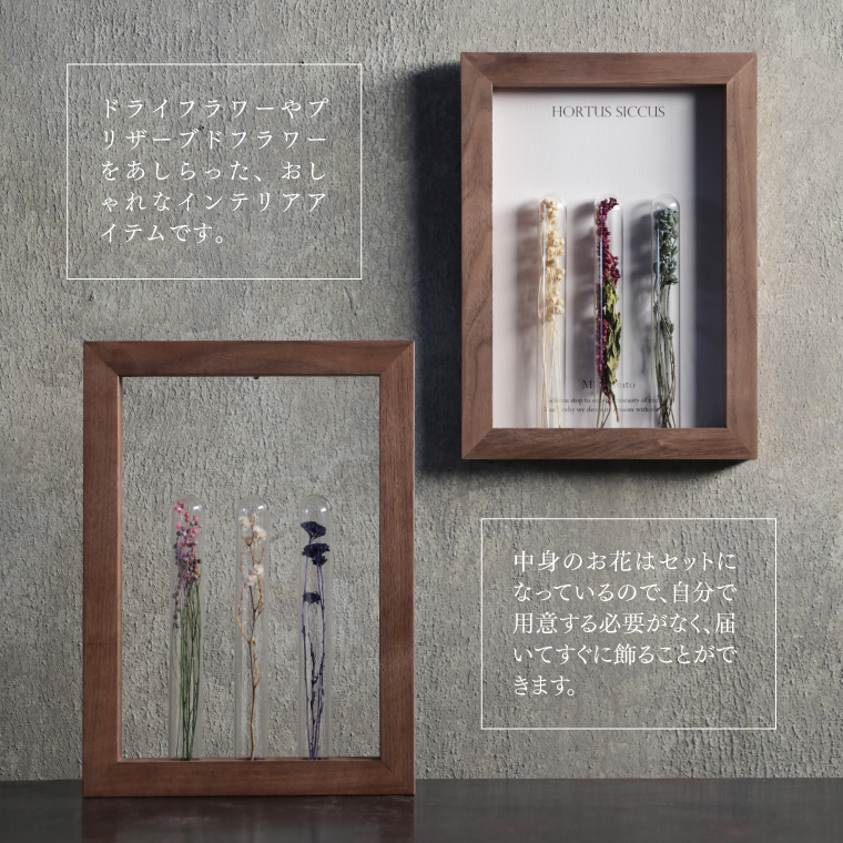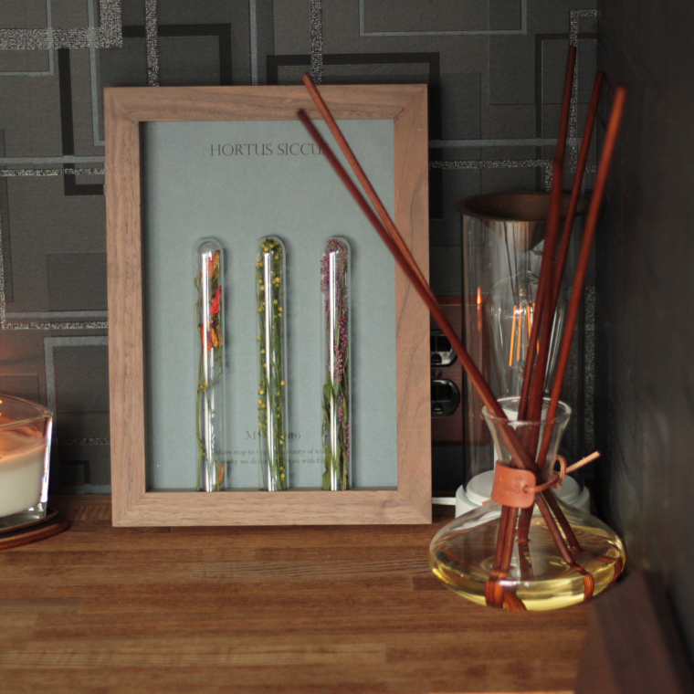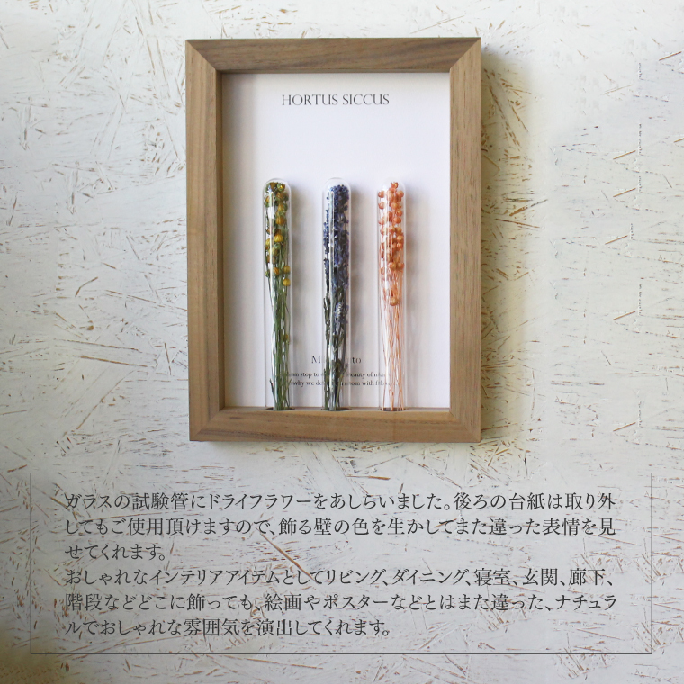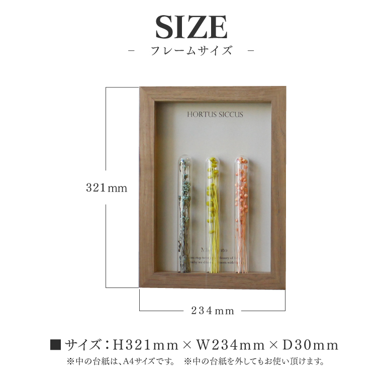 | 素材 | 額:ウォールナット無垢材 試験管:ガラス |
